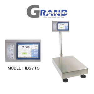 Model Capacity Resolution Pan Size IDS713-15K 15 kg. 1 g. 250 x 250 mm. IDS713-30K 30 kg. 2 g. 300 x 400 mm. IDS713-60K 60 kg. 5 g. 400 x 500 mm. IDS713-75K 75 kg. 5 g. 400 x 500 mm. IDS713-100K 100 kg. 10 g. 500 x 600 mm. IDS713-150K 150 kg. 10 g. 500 x 600 mm. IDS713-200K 200 kg. 10 g. 600 x 800 mm. IDS713-300K 300 kg. 20 g. 600 x 800 mm. IDS713-500K 500 kg. 50 g. 700 x 800 mm. IDS713-600K 600 kg. 50 g. 800 x 800 mm.