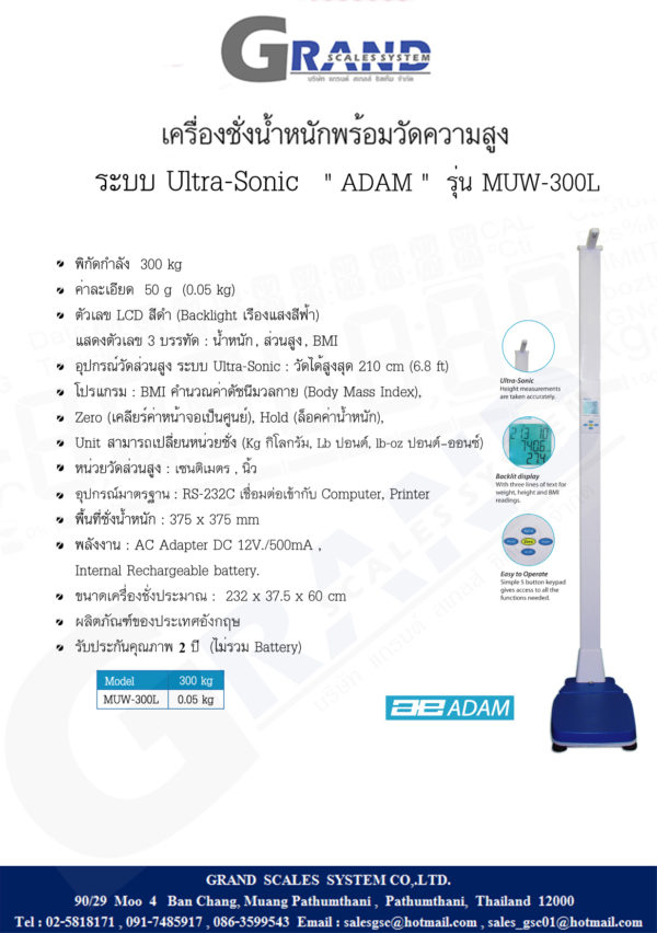 เครื่องชั่งน้ำหนักพร้อมวัดส่วนสูงระบบ Ultra-Sonic ” ADAM ”