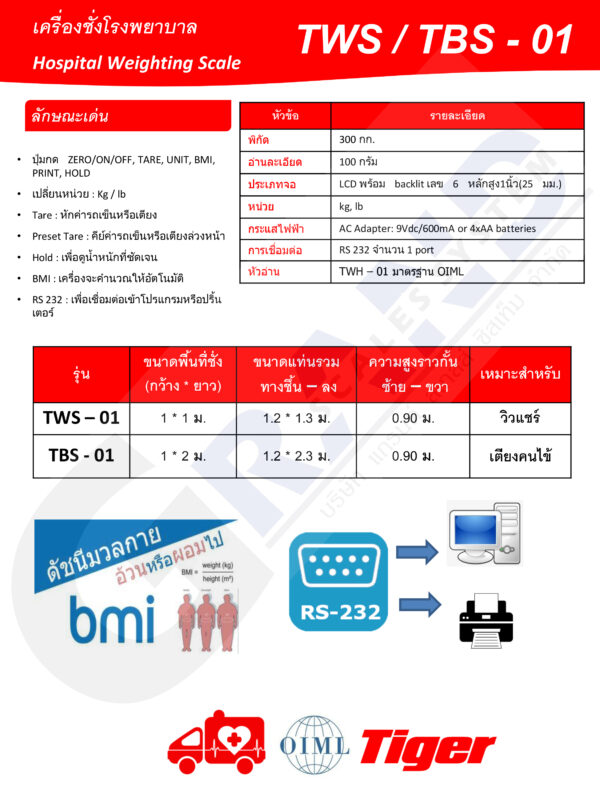 เครื่องชั่งน้ำหนักโรงพยาบาล ยี่ห้อ TIGER รุ่น TBS-01