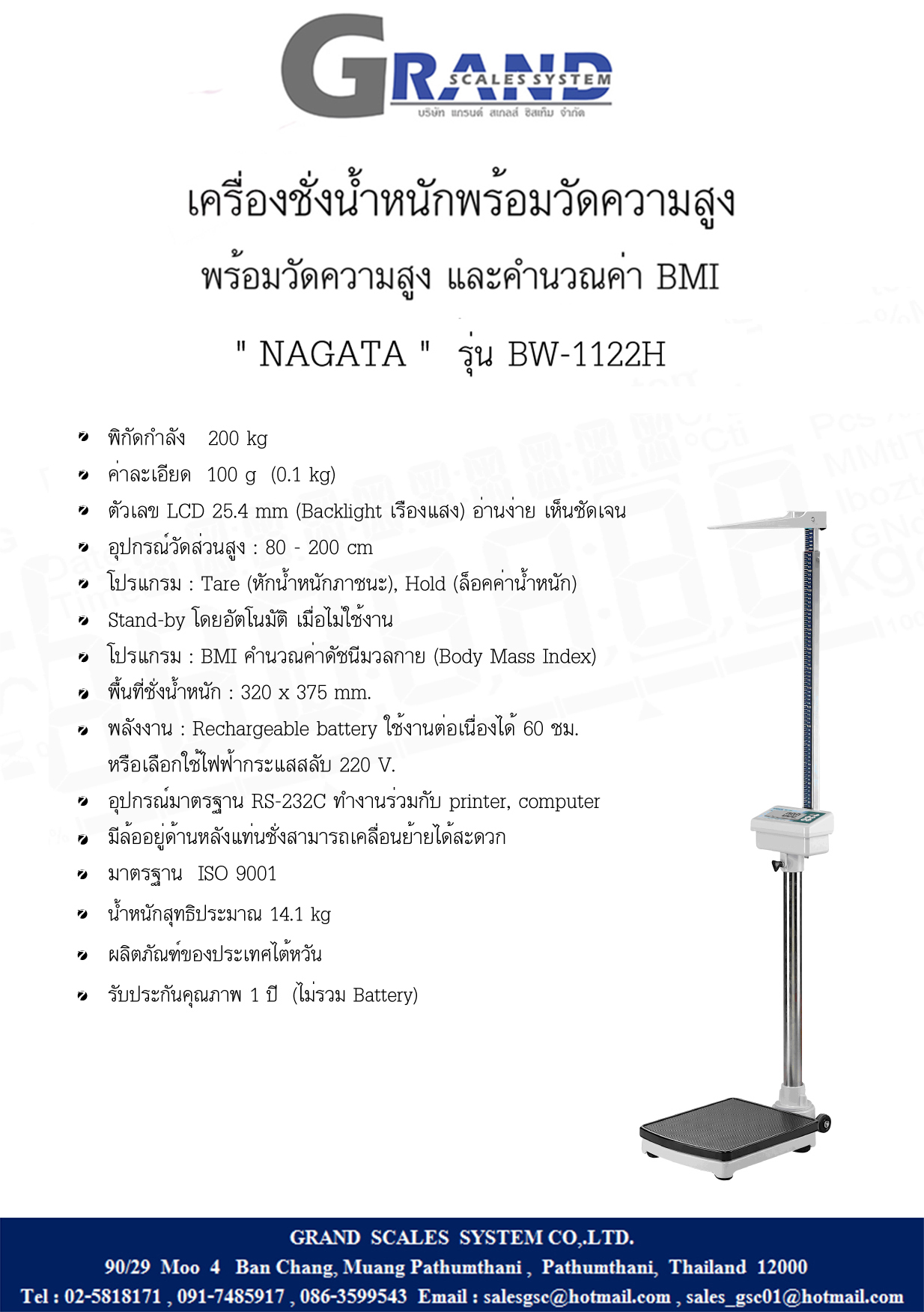 เครื่องชั่งน้ำหนัก ระบบดิจิตอลพร้อมวัดส่วนสูง และคำนวณค่า BMI ” NAGATA ”