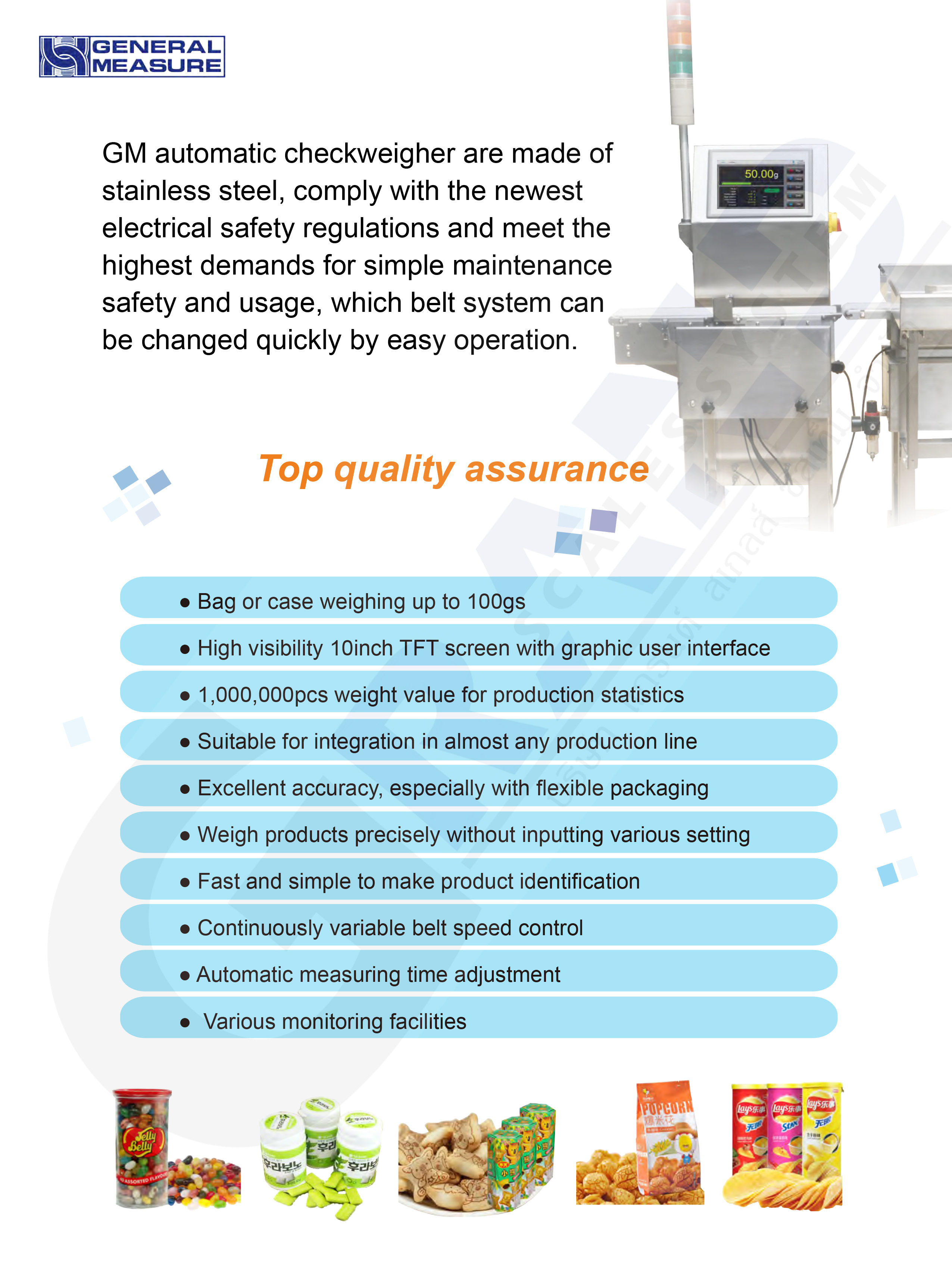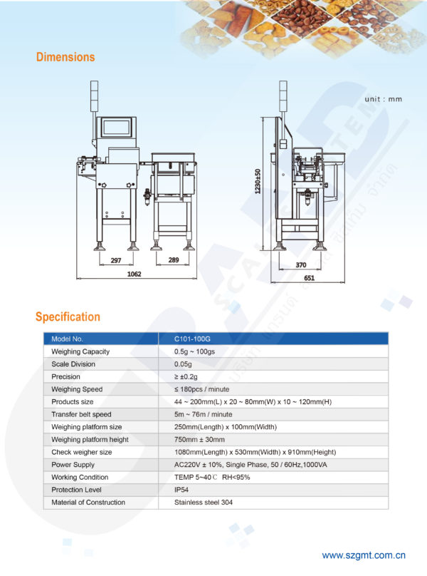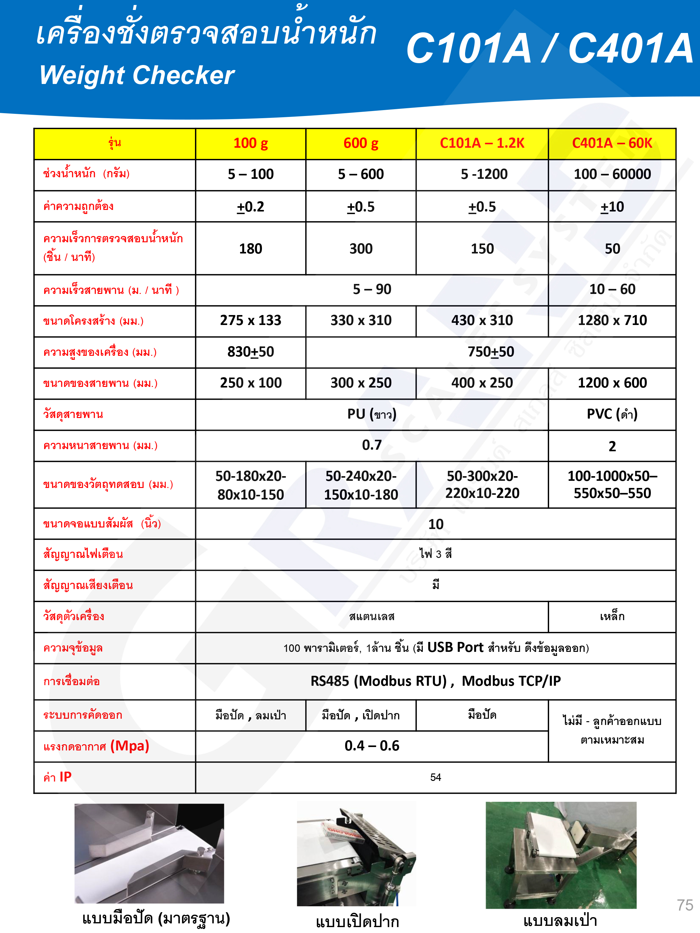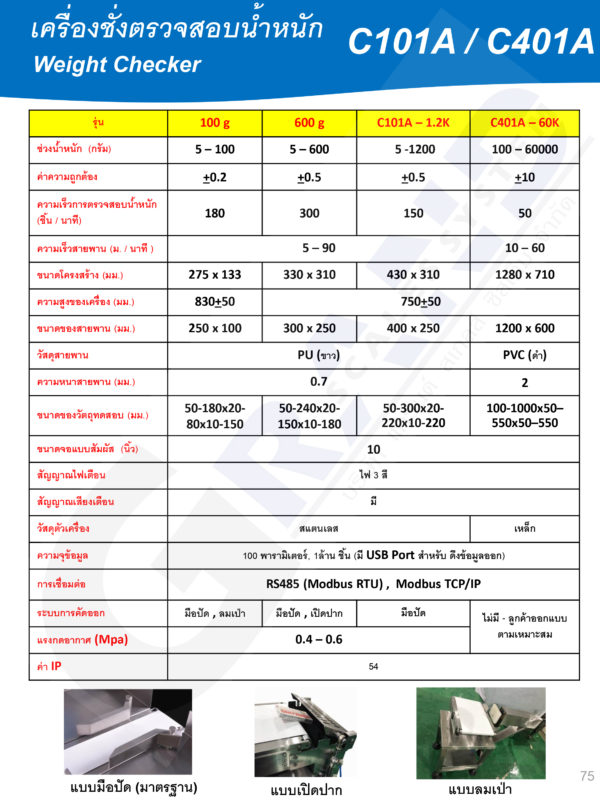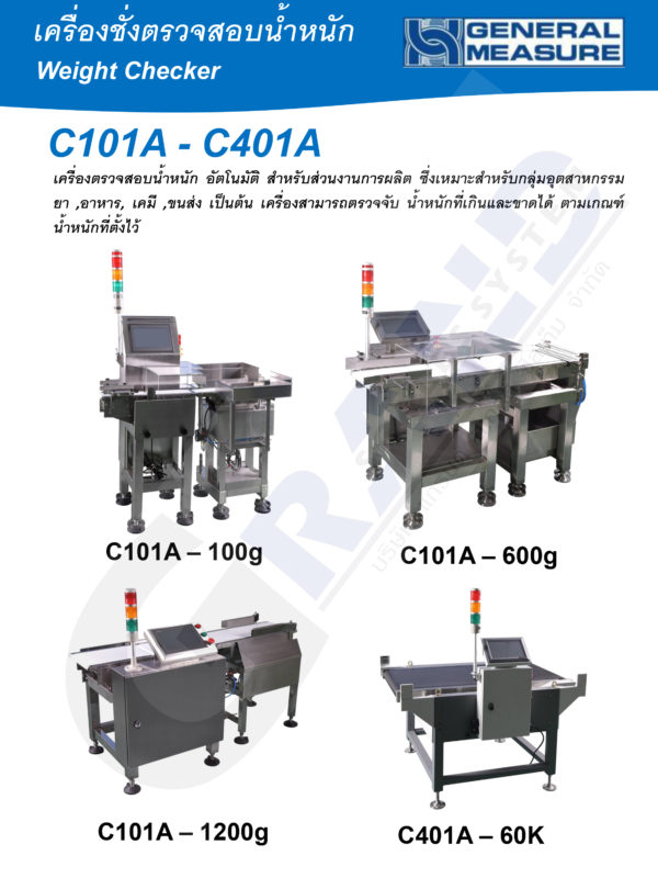 เครื่องตรวจสอบน้ำหนัก อัตโนมัติ สำหรับส่วนงานการผลิต รุ่น C101A-100G