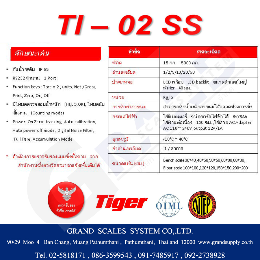 เครื่องชั่งน้ำหนักตั้งพื้นกันน้ำ ยี่ห้อ TIGER รุ่น TI-02SS
